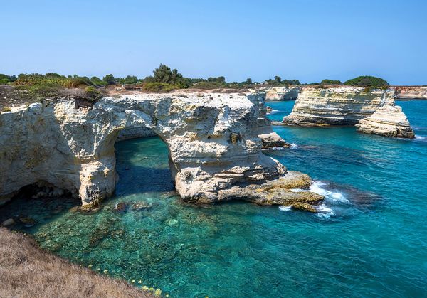 Salento ist eine malerische Region im südlichen Apulien, die für ihre atemberaubenden Küstenlandschaften, charmanten Dörfer und reiche Kultur bekannt ist. Diese Halbinsel, die sich zwischen der Adria und dem Ionischen Meer erstreckt, bietet eine Vielzahl von Aktivitäten für Strandliebhaber, Naturliebhaber und Geschichtsinteressierte. Besonders hervorzuheben sind die traumhaften Strände mit kristallklarem Wasser, die von beeindruckenden Klippen und malerischen Buchten gesäumt werden. Salento ist auch berühmt für seine historischen Städte wie Lecce, die oft als "Florenz des Südens" bezeichnet wird, und Gallipoli, eine alte Hafenstadt mit einer faszinierenden Geschichte. Die Region ist reich an Traditionen, darunter die berühmte apulische Küche, die köstliche Gerichte wie Orecchiette und frische Meeresfrüchte umfasst. Ein Besuch in Salento ist eine ideale Möglichkeit, die Schönheit der italienischen Küste zu genießen, die lokale Kultur zu entdecken und die herzliche Gastfreundschaft der Region zu erleben. Die Kombination aus atemberaubenden Landschaften, kulturellen Erlebnissen und kulinarischen Genüssen macht Salento zu einem unverzichtbaren Ziel für Reisende.