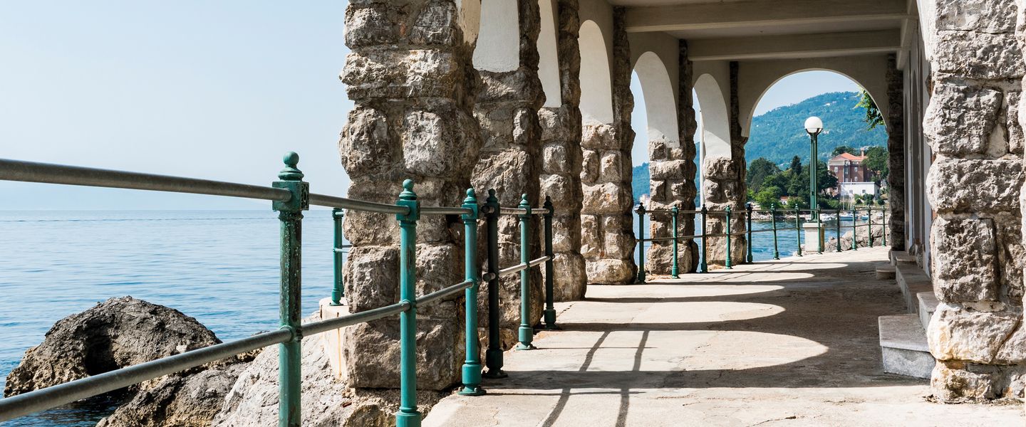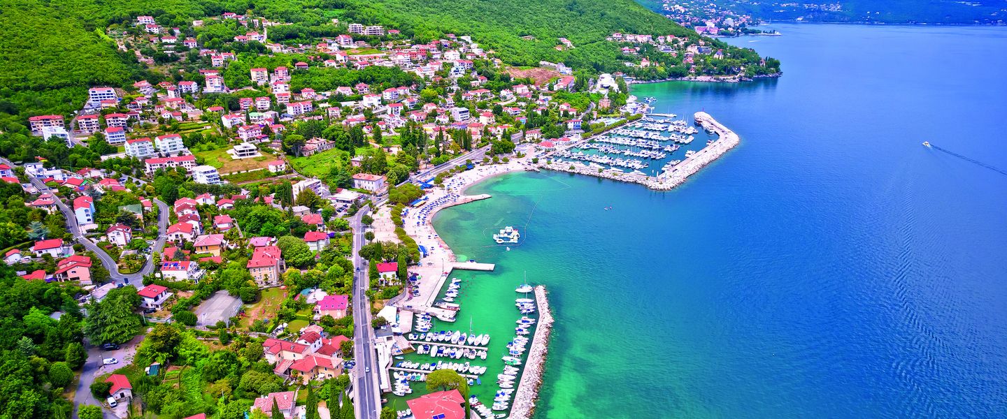 Opatija liegt an der Kvarner Bucht in Kroatien, etwa 13 Kilometer von der Stadt Rijeka entfernt und etwa 90 Kilometer von der Hauptstadt Zagreb. Geografisch ist die Stadt von den malerischen Hügeln des U?ka-Gebirges umgeben und bietet einen spektakulären Blick auf das Adriatische Meer. Opatija ist gut erreichbar über das kroatische Straßennetz, und es gibt regelmäßige Busverbindungen von Rijeka und anderen nahegelegenen Städten. Die zentrale Lage an der Küste macht Opatija zu einem idealen Ausgangspunkt für Erkundungstouren in die umliegenden Regionen, einschließlich der Inseln Krk und Cres. Die Kombination aus natürlicher Schönheit, kulturellem Erbe und der Möglichkeit, die mediterrane Lebensart hautnah zu erleben, macht Opatija zu einem attraktiven Ziel für Reisende, die die Vielfalt und den Charme dieser einzigartigen Stadt entdecken möchten.