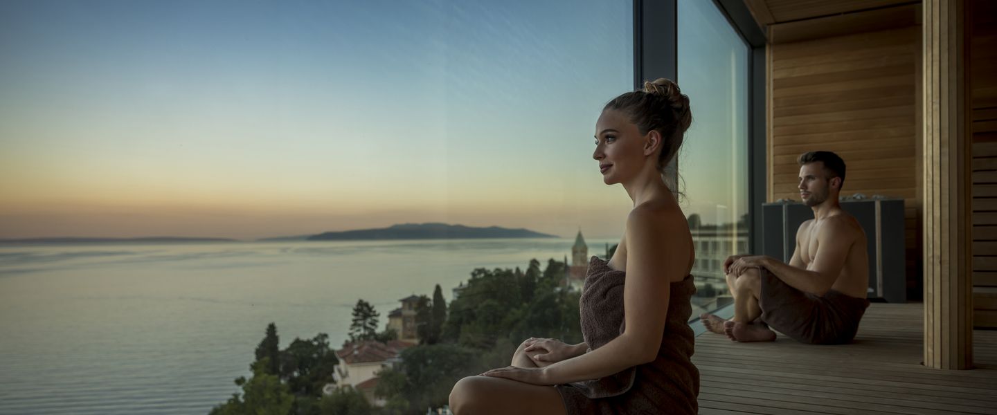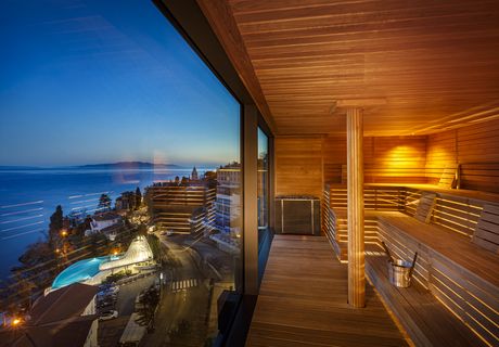 Das ****Grand Hotel Adriatic ist das größte Hotel in Opatija. Mit seinem einzigartigen Ambiente bietet es eine Oase der Entspannung und Erholung und ist die perfekte Wahl, um Geist und Seele in der Winterzeit eine Auszeit zu gewähren. In der Nähe des Meeres entlang der wunderschönen Lungomare-Promenade gelegen, wird es zu Ihrer Lieblingswahl! Das Besondere ist die spektakuläre Aussicht auf die Kvarner Bucht und die Kvarner Inseln. Es ist das einzige Spa-Zentrum mit einer solchen Aussicht in Opatija! Genießen Sie einen Pool mit warmem Meerwasser und verschiedenen Massageeffekten, ein Türkisches Bad, eine finnische Sauna mit Meerblick, eine Infrarotsauna, einen Whirlpool - der Sonnenuntergang wird unbezahlbar!