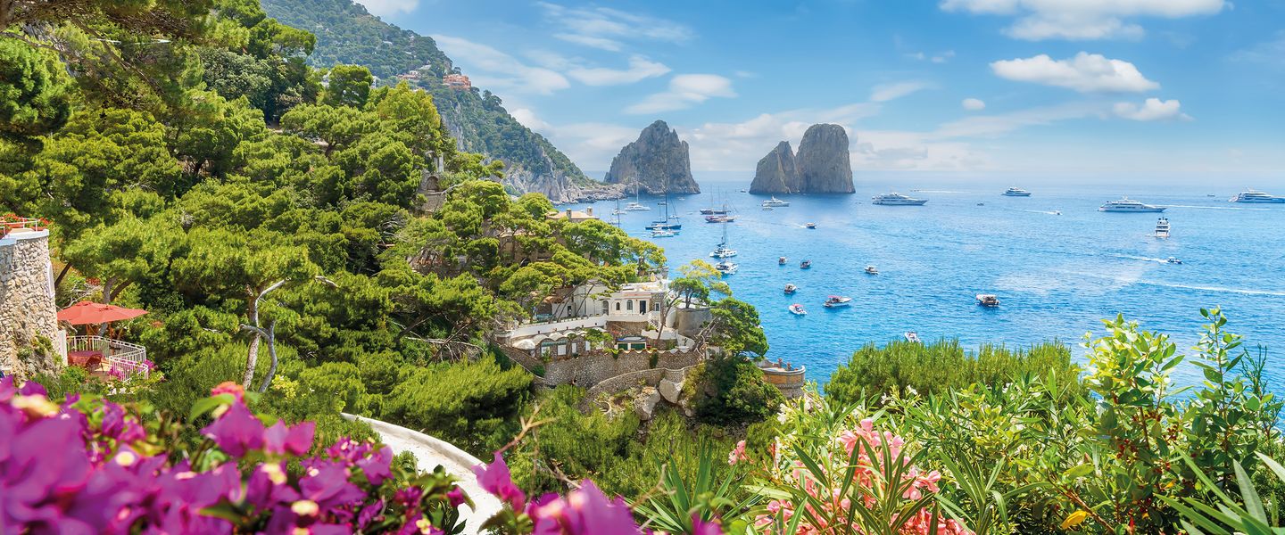 Capri liegt im Tyrrhenischen Meer, etwa 5 Kilometer von der Küste Kampaniens entfernt und ist Teil der Metropolitanstadt Neapel. Die Insel hat eine Fläche von etwa 10,4 Quadratkilometern und ist von steilen Klippen und malerischen Buchten umgeben. Capri ist gut erreichbar mit Fähren und Schnellbooten, die regelmäßig von Neapel, Sorrent und anderen Küstenorten ablegen. Die zentrale Lage von Capri im Golf von Neapel macht sie zu einem idealen Ziel für Tagesausflüge und längere Aufenthalte, um die Schönheit der umliegenden Region zu erkunden. Die Kombination aus beeindruckender Landschaft, reicher Geschichte und der Möglichkeit, die italienische Kultur zu genießen, macht Capri zu einem unverzichtbaren Ziel für Reisende, die das Beste der italienischen Riviera erleben möchten.