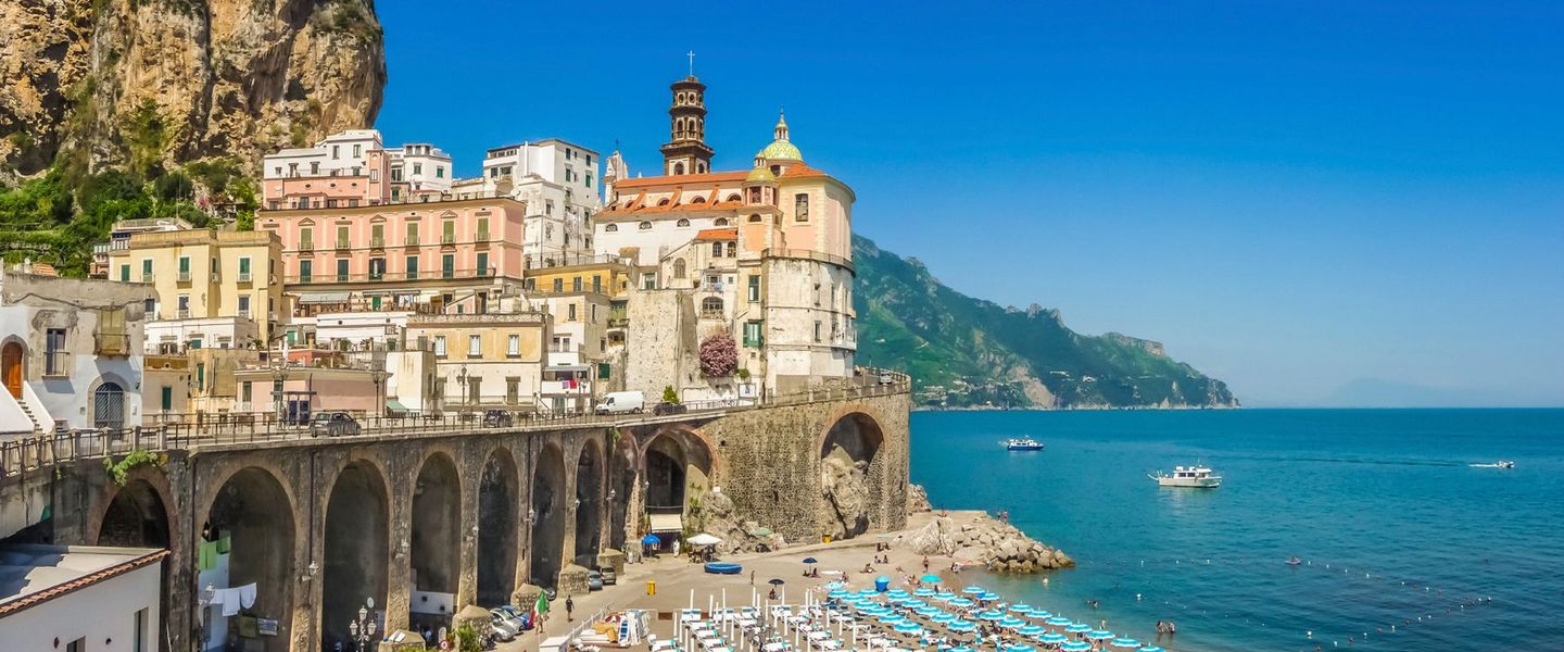 Die Amalfiküste liegt im Süden Italiens, in der Region Kampanien, und erstreckt sich entlang der Küste zwischen den Städten Sorrent und Salerno. Geografisch ist die Küste von steilen Klippen, üppigen Hügeln und kleinen Buchten geprägt, die eine dramatische Kulisse für die malerischen Dörfer bieten. Die Anreise zur Amalfiküste ist sowohl mit dem Auto als auch mit öffentlichen Verkehrsmitteln möglich. Es gibt regelmäßige Busverbindungen von Neapel und Sorrent, die die verschiedenen Städte entlang der Küste verbinden. Die zentrale Lage der Amalfiküste macht sie zu einem idealen Ziel für Tagesausflüge von Neapel oder als Teil einer Erkundungstour durch die Region Kampanien, die auch die Ruinen von Pompeji und den Vesuv umfasst. Die Kombination aus natürlicher Schönheit, kulturellem Erbe und der Möglichkeit, die italienische Lebensart zu genießen, macht die Amalfiküste zu einem unverzichtbaren Ziel für Reisende, die die Vielfalt und den Charme dieser einzigartigen Region entdecken möchten.
