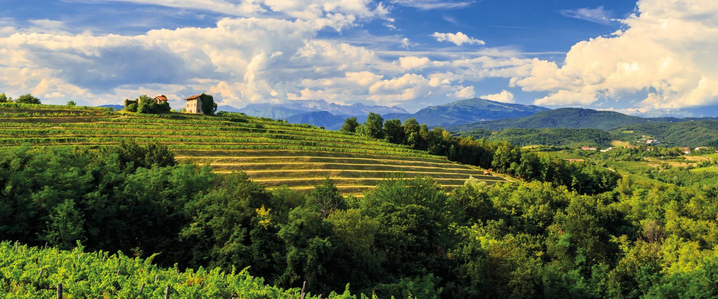 Am Fuße der Voralpen von Treviso befinden sich Weingärten, eingebettet in eine malerische Landschaft. Nach jeder Kurve bietet sich dem Besucher ein neues bezauberndes Panorama. Genießen Sie auf dieser Fahrt die Gegend und die typischen Produkte dieser Region: Grappa und Prosecco.