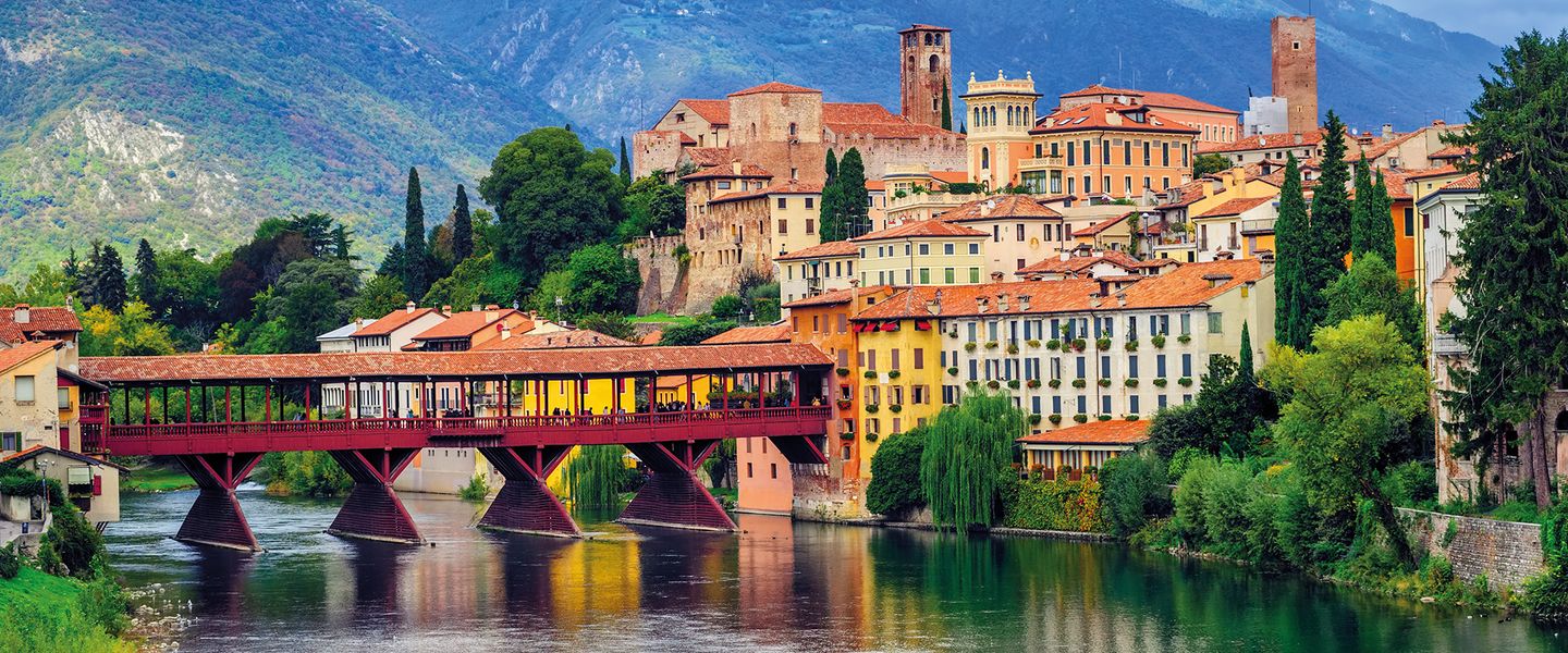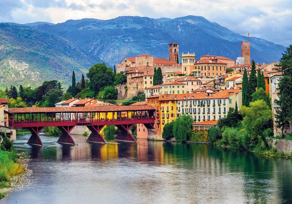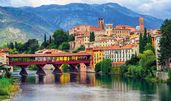Bassano del Grappa ist eine malerische Stadt in Italien, die in der Region Venetien liegt. Sie befindet sich am Fuße der Alpen, etwa 80 Kilometer nordwestlich von Venedig. Die Stadt ist berühmt für ihre historische Holzbrücke, die Ponte degli Alpini, und für die Herstellung des traditionellen Grappa, eines starken Tresterbrandes, der aus den Rückständen der Weinproduktion gewonnen wird. Bassano del Grappa hat eine reiche Geschichte, die bis in die römische Zeit zurückreicht, und war im Laufe der Jahrhunderte ein wichtiger Handels- und Kulturstandort. Die Stadt ist auch für ihre Kunstszene und ihre schönen Landschaften bekannt, die von den umliegenden Bergen und dem Fluss Brenta geprägt sind.