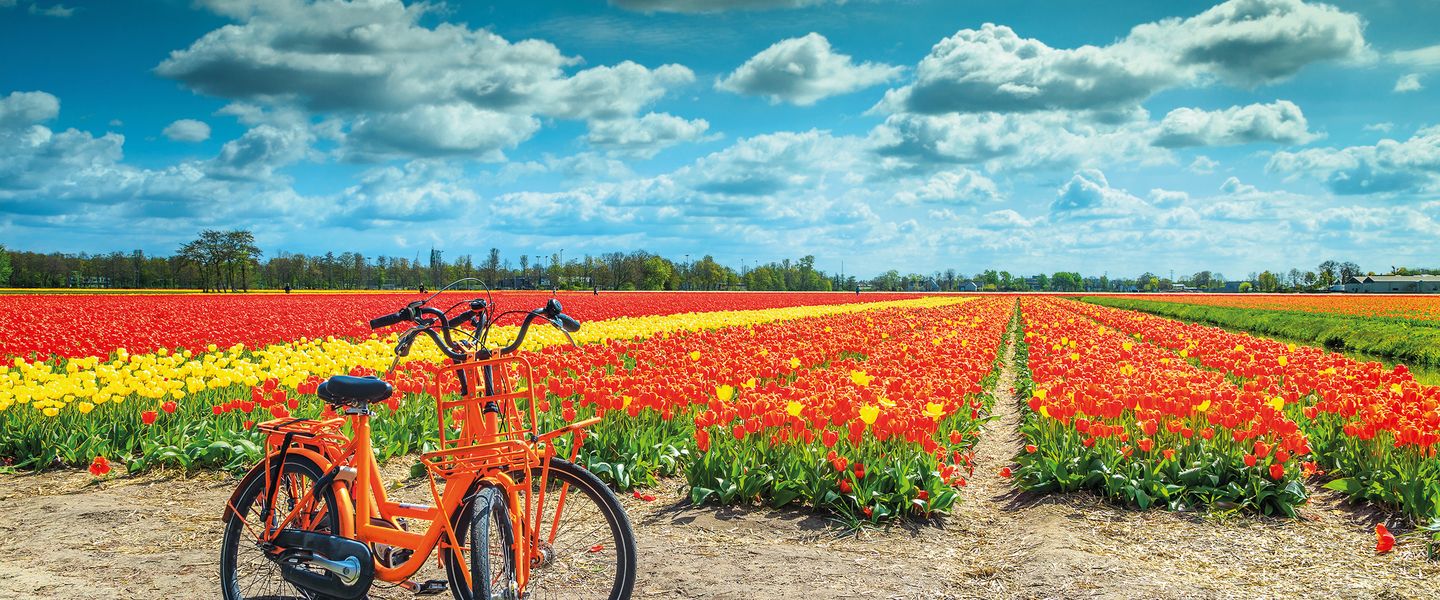 In Holland hat Fahrradfahren Kultstatus. Ganz Holland ist mit dem Fiets, wie das Fahrrad hier genannt wird, auf unzähligen Radwegen unterwegs. Entdecken Sie die herrliche Landschaft, historische Städte und Holland-Ikonen wie Windmühlen und Tulpenfelder mit dem Fahrrad. Sie erleben das schöne Tal der Vecht, die Polder, das Meer, die Seen und die Dünen der Nordseeküste. Das Venedig des Nordens - Amsterdam - heißt Sie mit 165 romantischen Grachten herzlich willkommen.
