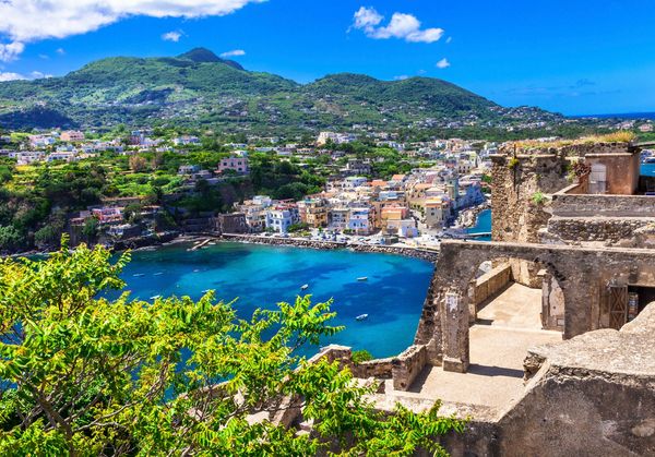 Ischia liegt im Tyrrhenischen Meer, etwa 30 Kilometer von Neapel entfernt und ist die größte der Phlegräischen Inseln. Geografisch ist die Insel von steilen Küsten, sanften Hügeln und üppiger Vegetation geprägt, die eine beeindruckende Kulisse für die malerischen Strände und Dörfer bieten. Die Anreise nach Ischia erfolgt in der Regel mit der Fähre oder dem Tragflächenboot von Neapel oder Pozzuoli, wobei die Überfahrt etwa 1 bis 1,5 Stunden dauert. Die zentrale Lage von Ischia macht sie zu einem idealen Ziel für Tagesausflüge von Neapel oder als Teil einer Erkundungstour durch die Region Kampanien, die auch die Amalfiküste und die Insel Procida umfasst. Die Kombination aus natürlicher Schönheit, kulturellem Erbe und der Möglichkeit, die italienische Lebensart zu genießen, macht Ischia zu einem unverzichtbaren Ziel für Reisende, die die Vielfalt und den Charme dieser einzigartigen Insel entdecken möchten.